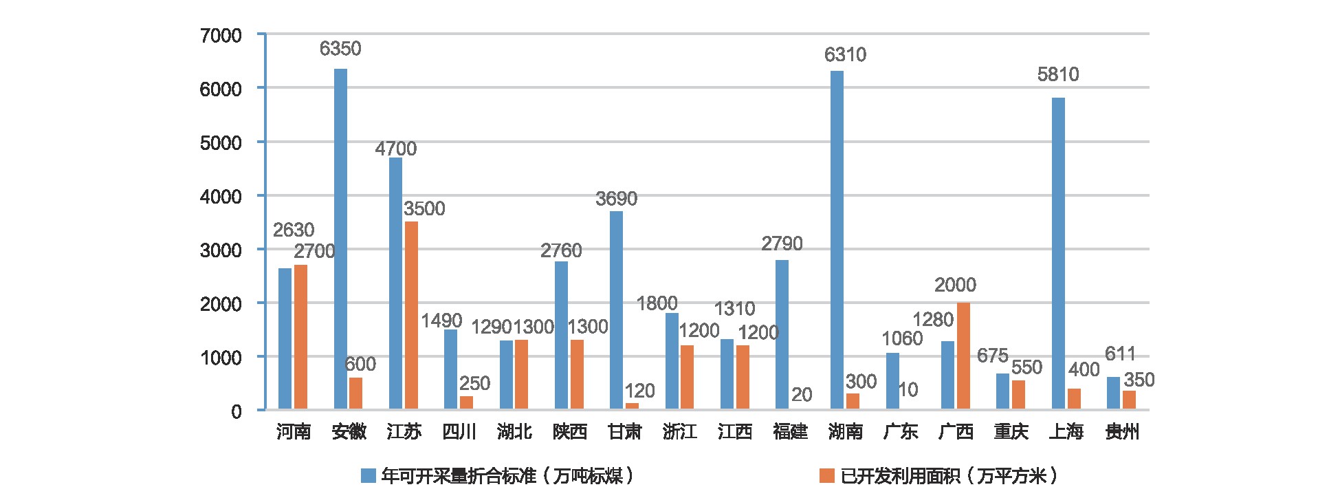 今后一個時期,南方冬季供暖將成為國家區域經濟發展的重要支點,也是提升人民生活質量的重要標志。中國所有省會級以上城市,每年地源熱泵系統(包括地埋管和地下水熱泵)夏季(按5個月計算)換熱量約為3萬億千瓦時,折合標準煤約3.83億噸,可制冷面積為101億平方米;每年地源熱泵系統冬季(按4個月計算)換熱量為1.5萬億千瓦時,折合標準煤約1.83億噸,可供暖面積為119億平方米。夏熱冬冷地區具有豐富的淺層可開采資源量,推廣使用地源熱泵技術具有得天獨厚的條件,目前地源熱泵項目幾乎在全國各地都有推廣(見圖4)。夏熱冬冷地區淺層地熱供暖制冷與城市建設、新農村建設保持匹配,對于長江中下游地區經濟社會發展有重要意義。此外,夏熱冬冷地區地表水年可利用量達8000億立方米,城市污水處理能力每天可達1億立方米,這兩者的可利用量,夏熱冬冷地區占1/3以上,也是重要的地熱冷熱源。