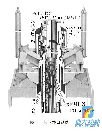 臨時導向基座用于定井位,是首先下入的設(shè)備,坐在海底泥線上;永久導向基座安裝在臨時導向基座之上,通過連接在導向柱上的導向繩引導后續(xù)工具的入井及設(shè)備的安裝;?762mm(30in)導管頭懸掛導管坐落在永久導向基座內(nèi),用專用下入工具隨永久導向基座同時下入;?476.25mm(183 /4in)高壓井口頭下部連接表層套管,坐落在導管頭內(nèi),通過液壓連接器連接水下防噴器;各層技術(shù)套管通過套管掛和密封總成懸掛在高壓井口頭內(nèi)。