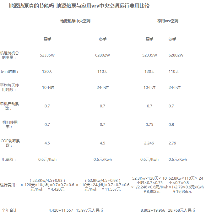 地源熱泵地源熱泵真的節能嗎-地源熱泵與一般空調運行費用對比
