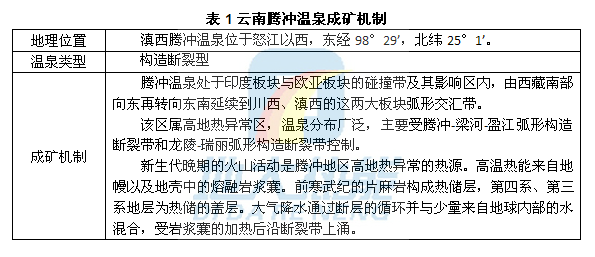 云南最著名的溫泉在騰沖,該地區溫泉可用于醫療和提取礦物資源,泉水可用于水浴,也可以進行天然蒸氣浴,對循環系統、消化系統、神經系統等疾病均有較顯著的療效。借助豐富的地熱資源,當地政府將騰沖建設成為中國著名的地熱資源風景區。2009年上半年,騰沖縣接待旅游者155.3萬人次,實現旅游業總收入6.19億元。